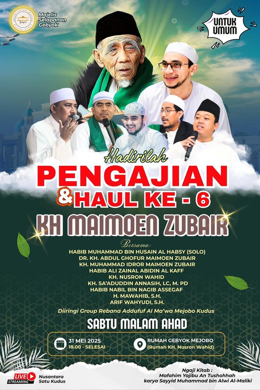 KUDUS, Suaranahdliyin.com – Bertempat di Rumah Gebyok Mejobo, akan dilangsungkan pengajian umum sekaligus peringatan haul ke-6 KH Maimoen Zubair.