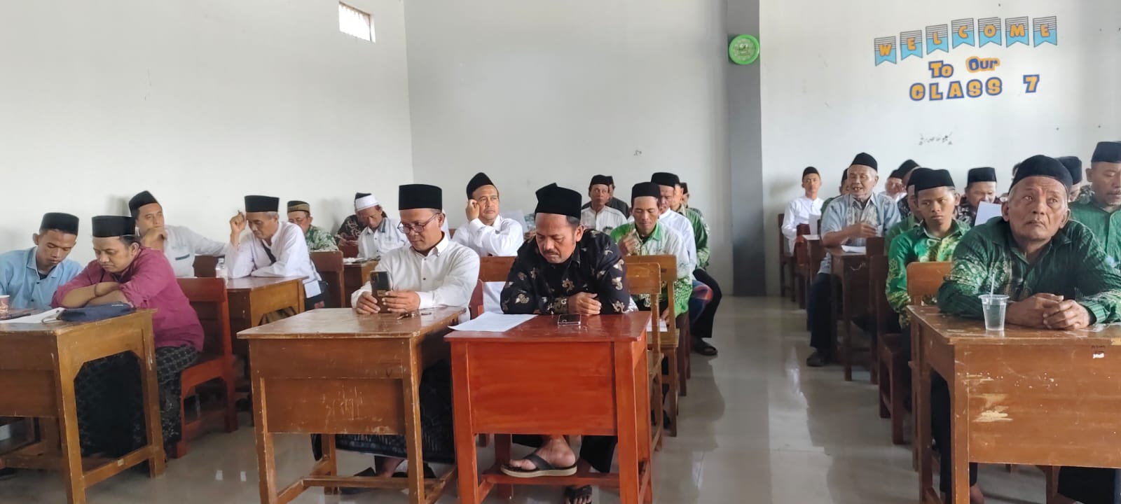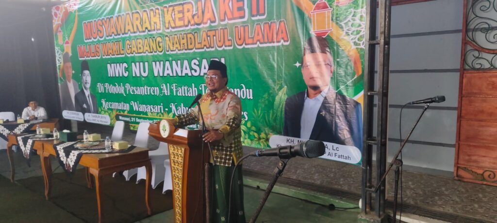 Pimpinan Pondok Pesantren Al Fattah Tegalgandu Kec Wanasari Kabupaten Brebes, KH Musyaffa,Lc saat memberikn pembekalan dalam Musyawarah Kerja (Musker) Majelis Wakil Cabang Nahdlatul Ulama (MWCNU) Wanasari, belum lama ini.