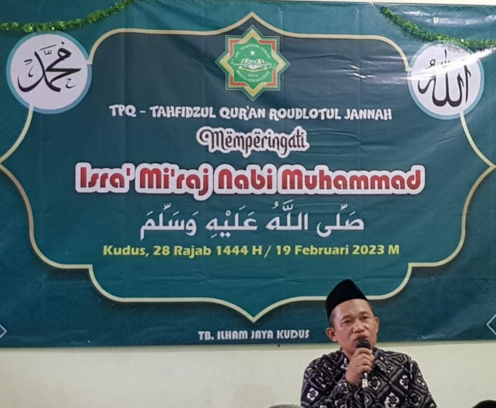 KUDUS, Suaranahdliyin.com – Pembina TPQ dan Tahfidhul Qur’an Roudlotul Jannah Besito, Kecamatan Gebog, Kiai Mas’adi Irawan S.Ag, didaulat untuk menyampaikan tausiyah dalam Isra Mikraj yang diselenggarakan di Aula TPQ, Ahad (19/2/2023) kemarin.