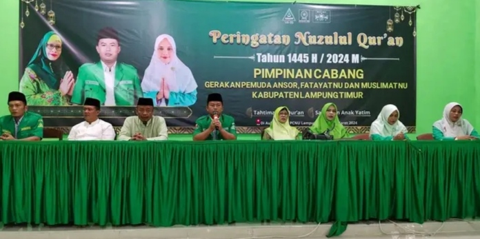 LAMPUNG TIMUR,Suaranahdliyin.com – Ttiga Badan Otonom (banom) Nahdlatul Ulama Kabupaten Lampung Timur yakni Gerakan Pemuda Ansor, Fatayat NU, dan Muslimat NU, menggelar kegiatan bersama peringatan Nuzulul Qur’an di aula Kantor PCNU Lampung Timur, (Lamtim) Kamis, (28/3/2024) lalu.