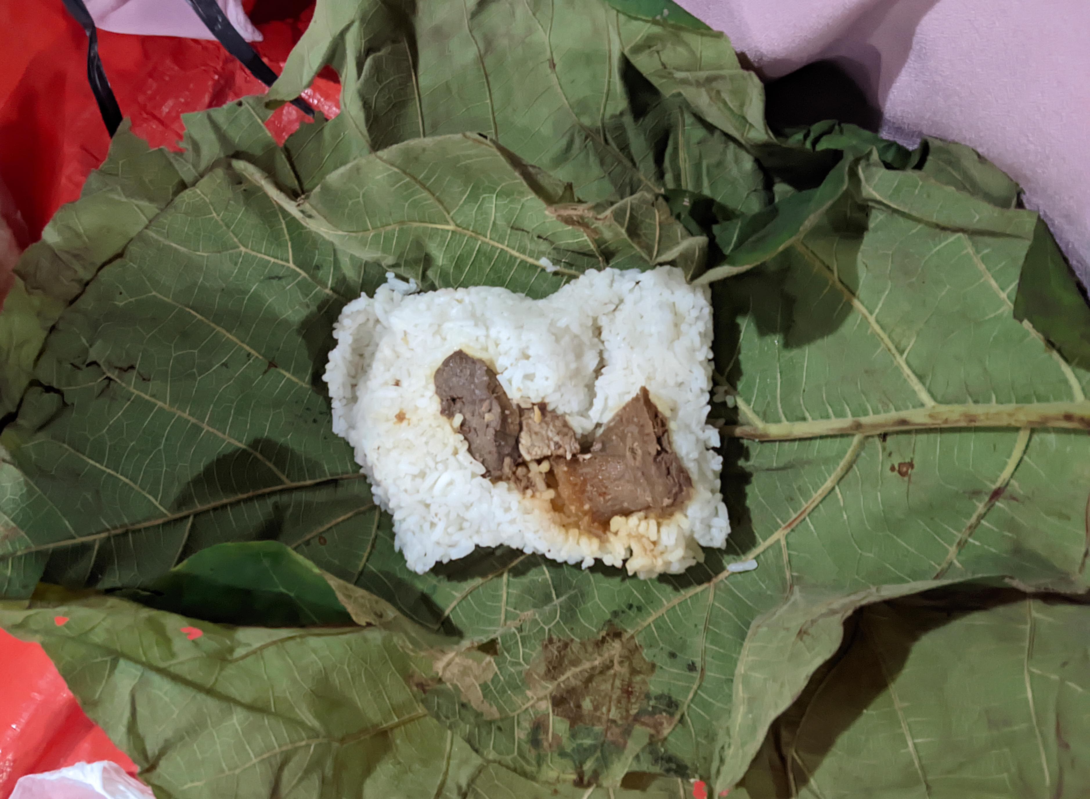 “Daun jati dipilih karena akan menambah aroma yang sedap, dan juga daun jati ini mudah ditemukan, tekstur daunnya yang kering akan menjaga kelembaban dan kualitas nasi jangkrik.” Ucap Bu Sul salah satu warga di Dukuh Blolo. (Putri Nur Isnaeni, mahasiswa PPL Prodi KPI FDKI IAIN Kudus 2024)