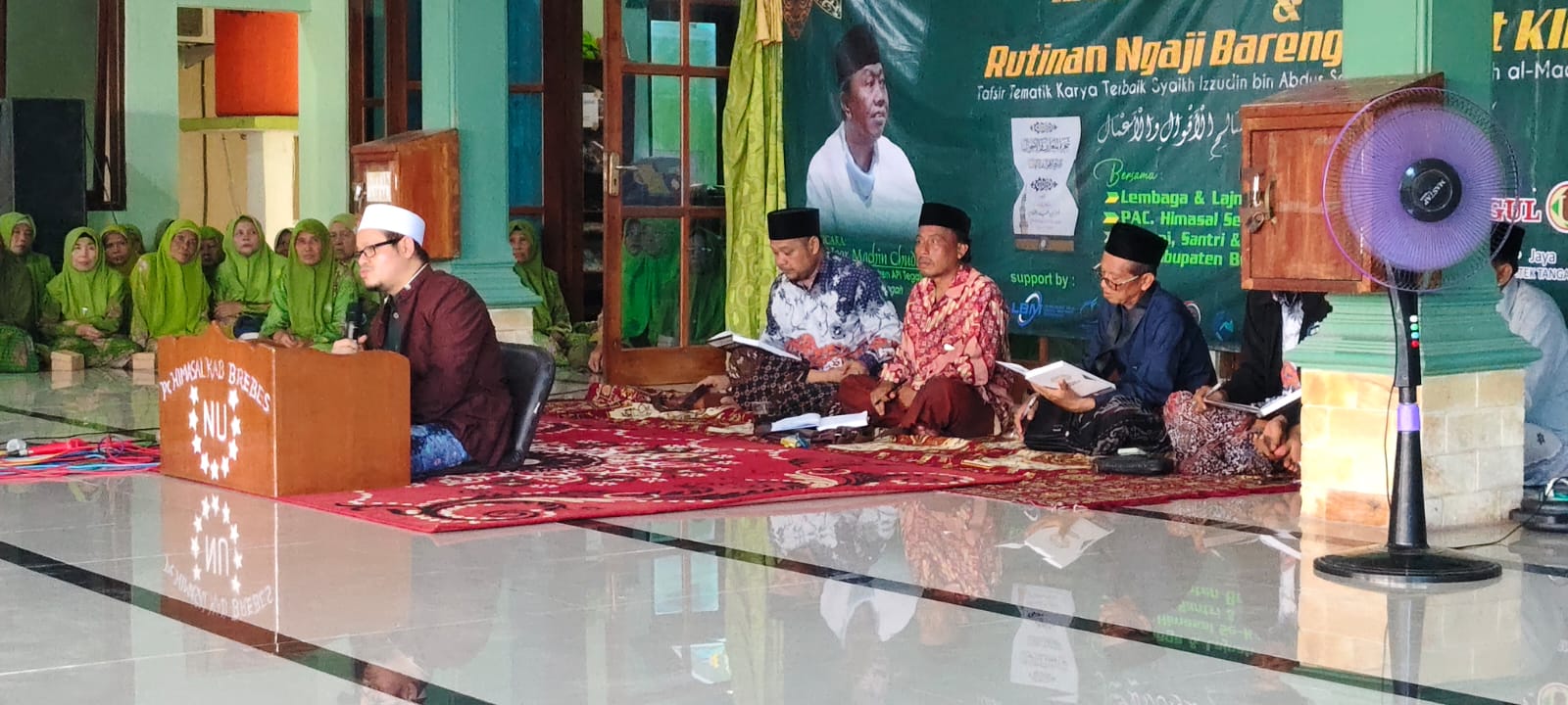 Turut hadir di tengah jamaah, Rais Syuriah MWCNU Wanasari sekaligus Penasehat PC HIMASAL Kab Brebes, KH Sobarudin (lis/adb