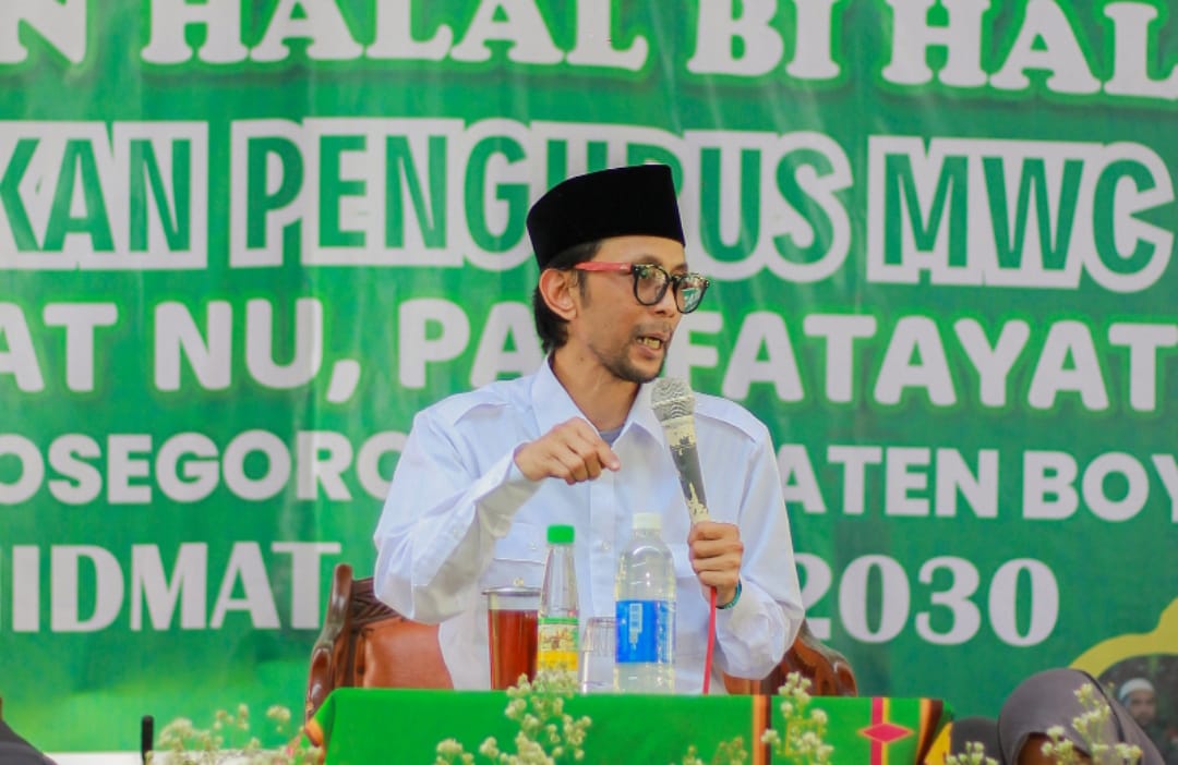 Hal itu disampaikan Gus Aun dalam Halalbihalal dan Pelantikan Majelis Wakil Cabang (MWC) NU, Pimpinan Anak Cabang (PAC) Muslimat NU, dan PAC Fatayat NU Kecamatan Wonosegoro, Kabupaten Boyolali di NU Center Wonosegoro, Ahad (04/05/2025).