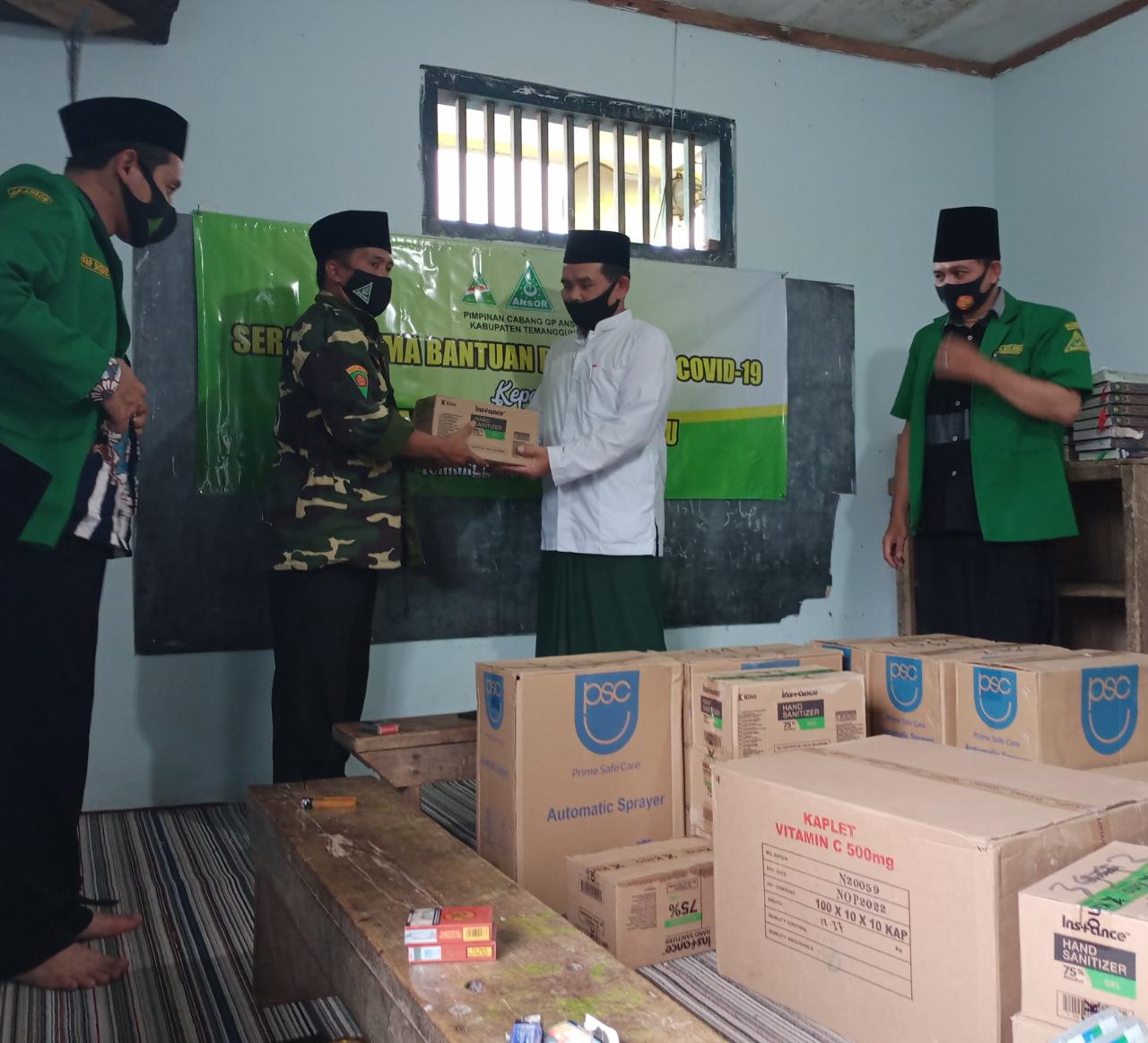 Di sela-sela road show di Kecamatan Bulu, Kamis (7/1/2021) kemarin, PC GP Ansor Temanggung mengadakan serah terima bantuan penanganan Covid – 19 bagi pondok pesantren. Sasaran program kali ini adalah PP Al Islah dan Al Mujahidin Gondosuli, Bulu, Temanggung. Hadir pada kesempatan itu jajaran organisasi taktis GP Ansor, mulai dari Banser hingga Bagana.