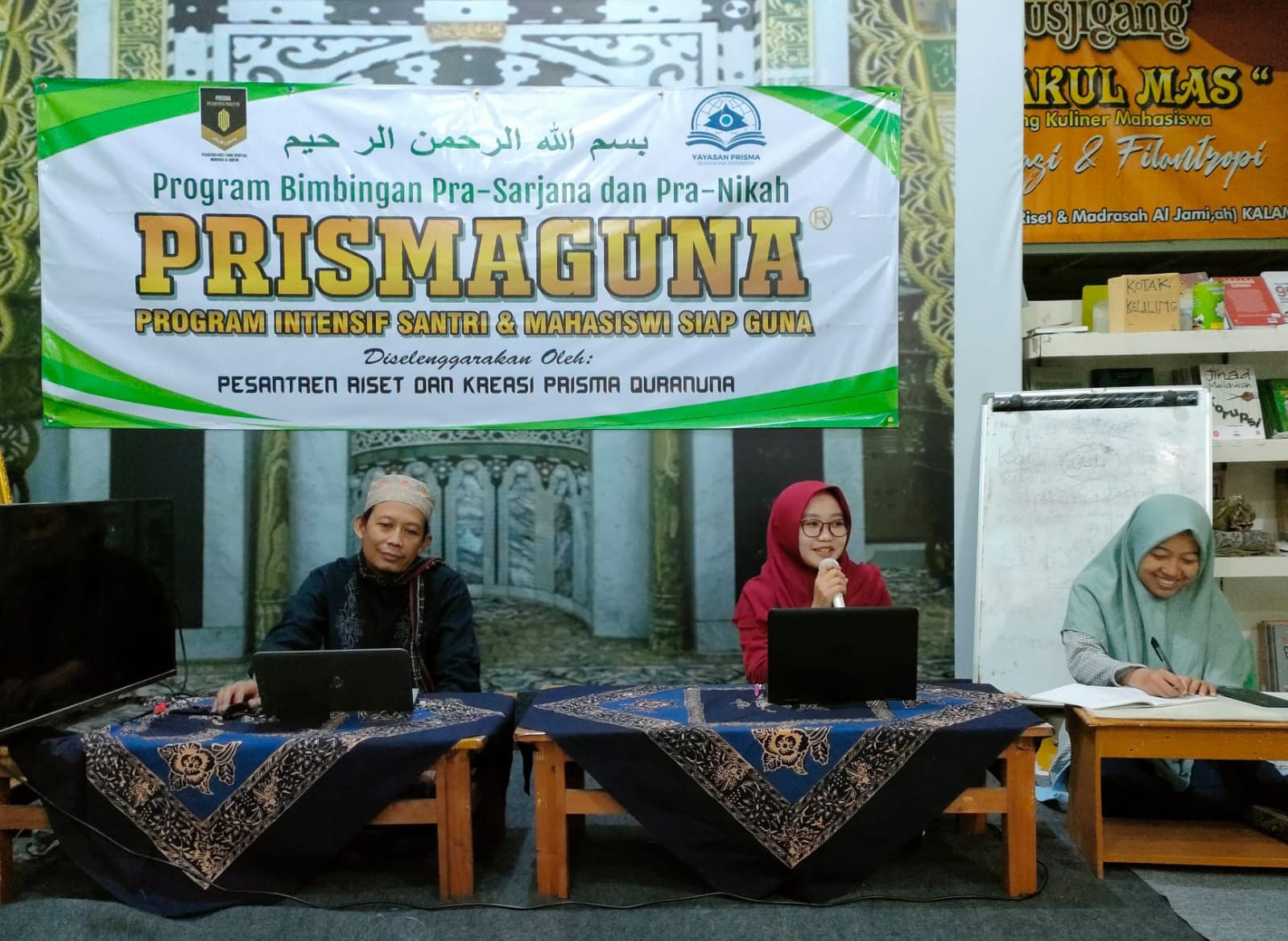PRISMAGUNA yang diikuti sekira 50-an santriyah ini, antara lain menghadirkan Afina Izzati AH penulis yang juga alumnus program Pascasarjana IAIN Kudus sebagai salah satu narasumber. Ia pada kesempatan itu menyampaikan materi penulisan berita, feature, dan disertai praktik langsung.