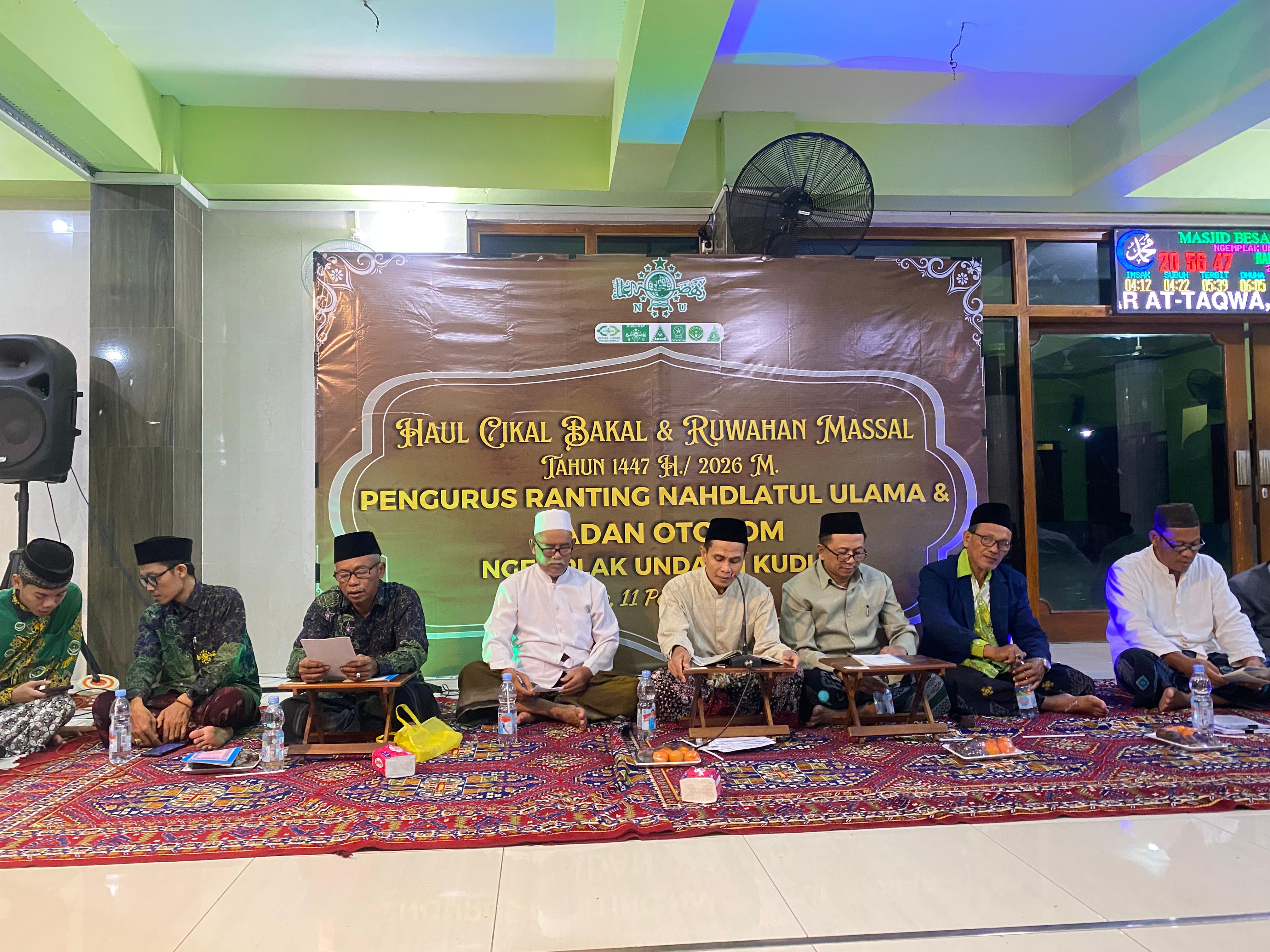 KUDUS,Suaranahdliyin.com – Pengurud Ranting Nahdlatul Ulama (PRNU) bersama Badan Otonom NU Ngemplak, Undaan, Kudus, menggelar kegiatan Haul Cikal Bakal dan Ruwahan Masal di Serambi Masjid Besar At Taqwa.setempat Rabu malam (11/2/i 2026).