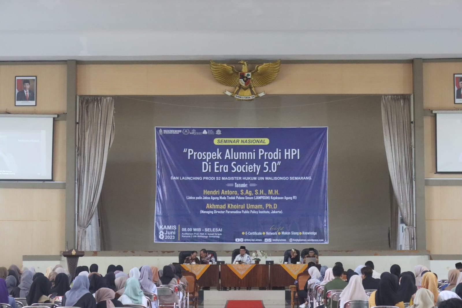 SEMARANG, Suaranahdliyin.com – Program Studi Hukum Pidana Islam (HPI) Fakultas Syariah dan Hukum (FSH) Universitas Islam Negeri (UIN) Walisongo Semarang menyelenggarakan Seminar Nasional bertajuk “Prospek Alumni Prodi HPI di Era Society 5.0” di Auditorium Prof TGK H Ismail Ya’qub pada awal pekan Juni lalu.