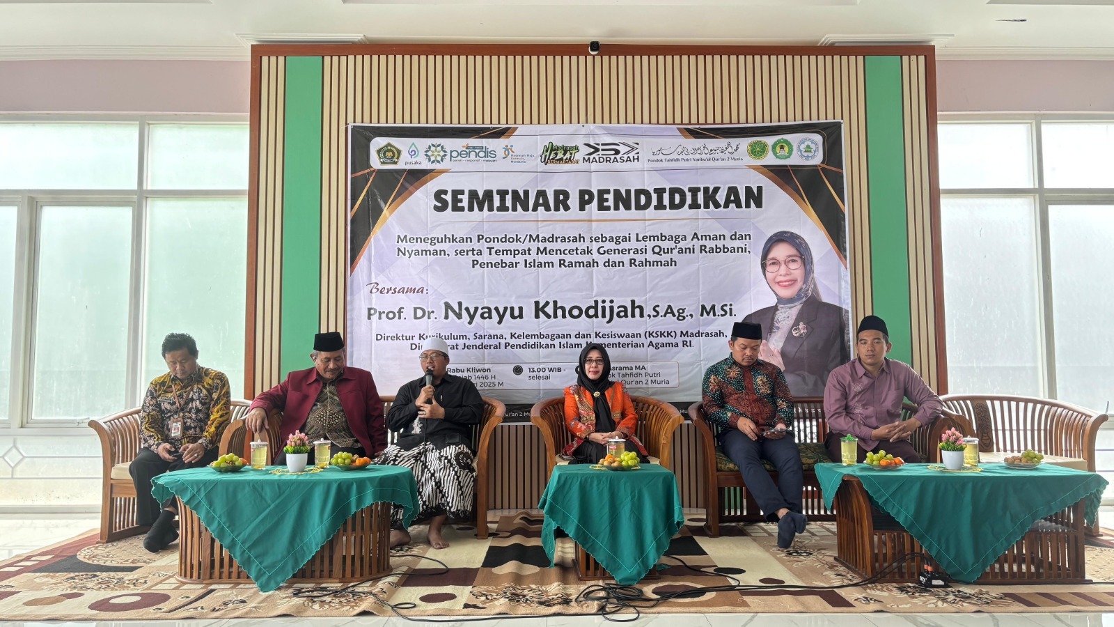 KUDUS, Suaranahdliyin.com – Prof Dr Nyayu Khadijah SAg MSi, direktur Kurikulum Sarana Kelembagaan dan Kesiswaan (KSKK) Kemenag RI didaulat menjadi narasumber seminar pendidikan di Pondok Tahfidh Putri Yanbu’ul Qur’an (PTPYQ) 2 Muria, baru-baru in.
