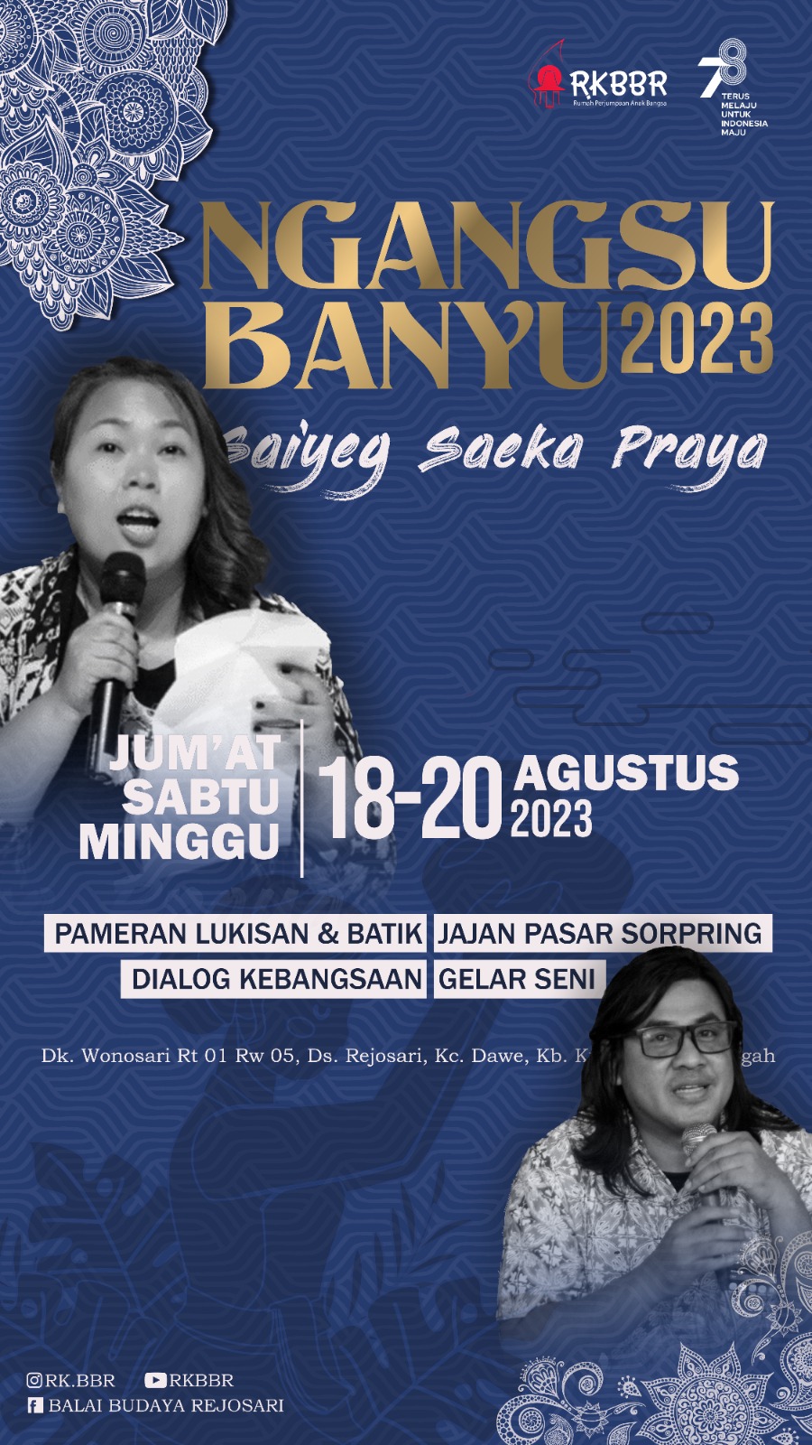 Disamping Dialog Kebangsaan, Ngangsu Banyu2023 bertema Saiyeg Saeko Proyo diramaikan juga dengan pameran lukisan dan batik, Jajan Pasar Sorpring dan gelar seni. Pameran akan menampilkan karya dari romo kongregasi MSF dan pelukis nasioal.