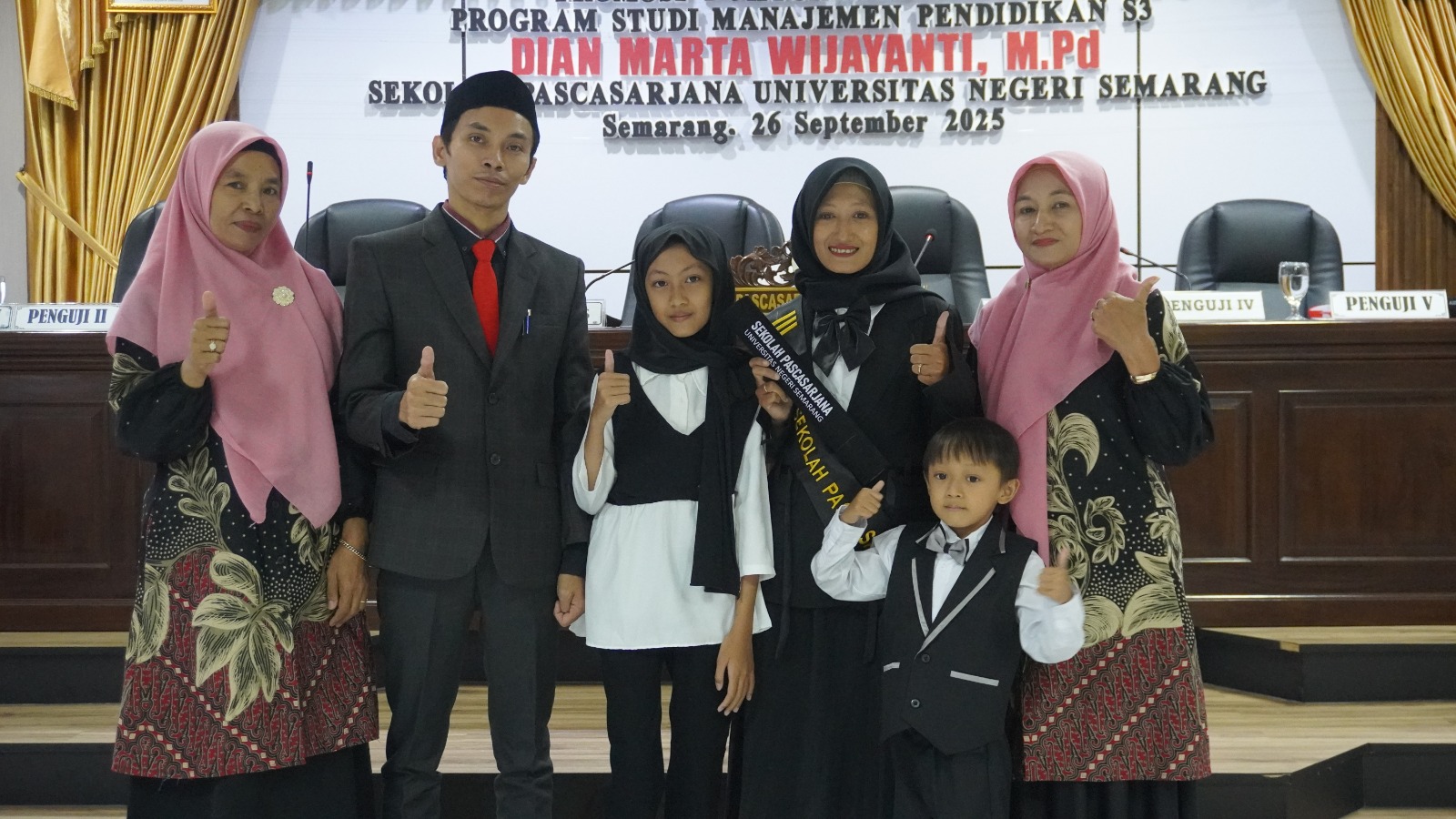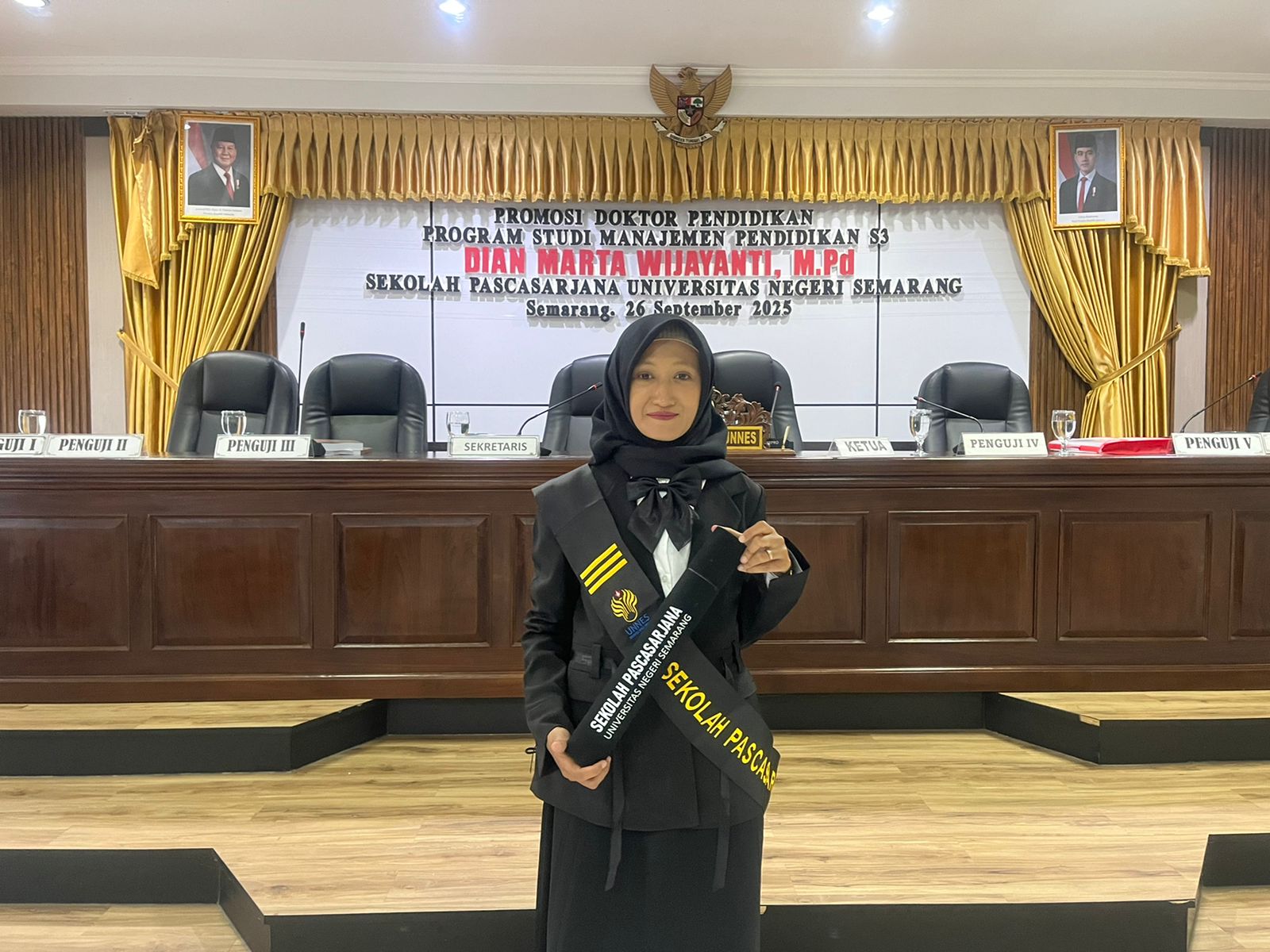 SEMARANG,Suaranahdliyin.com – Program Studi S3 Manajemen Pendidikan Sekolah Pascasarjana Universitas Negeri Semarang (UNNES) menggelar sidang promosi doktor pada Jumat pagi, 26 September 2025. Sidang yang berlangsung di Gedung G Lantai 1 Sekolah Pascasarjana UNNES tersebut menghadirkan promovenda Kepala SDN Gajahmungkur 3 Semarang Dian Marta Wijayanti dengan disertasi berjudul “Determinan Kinerja Guru Sekolah Dasar di Kota Semarang dengan Digital School Governance sebagai Variabel Moderasi.”