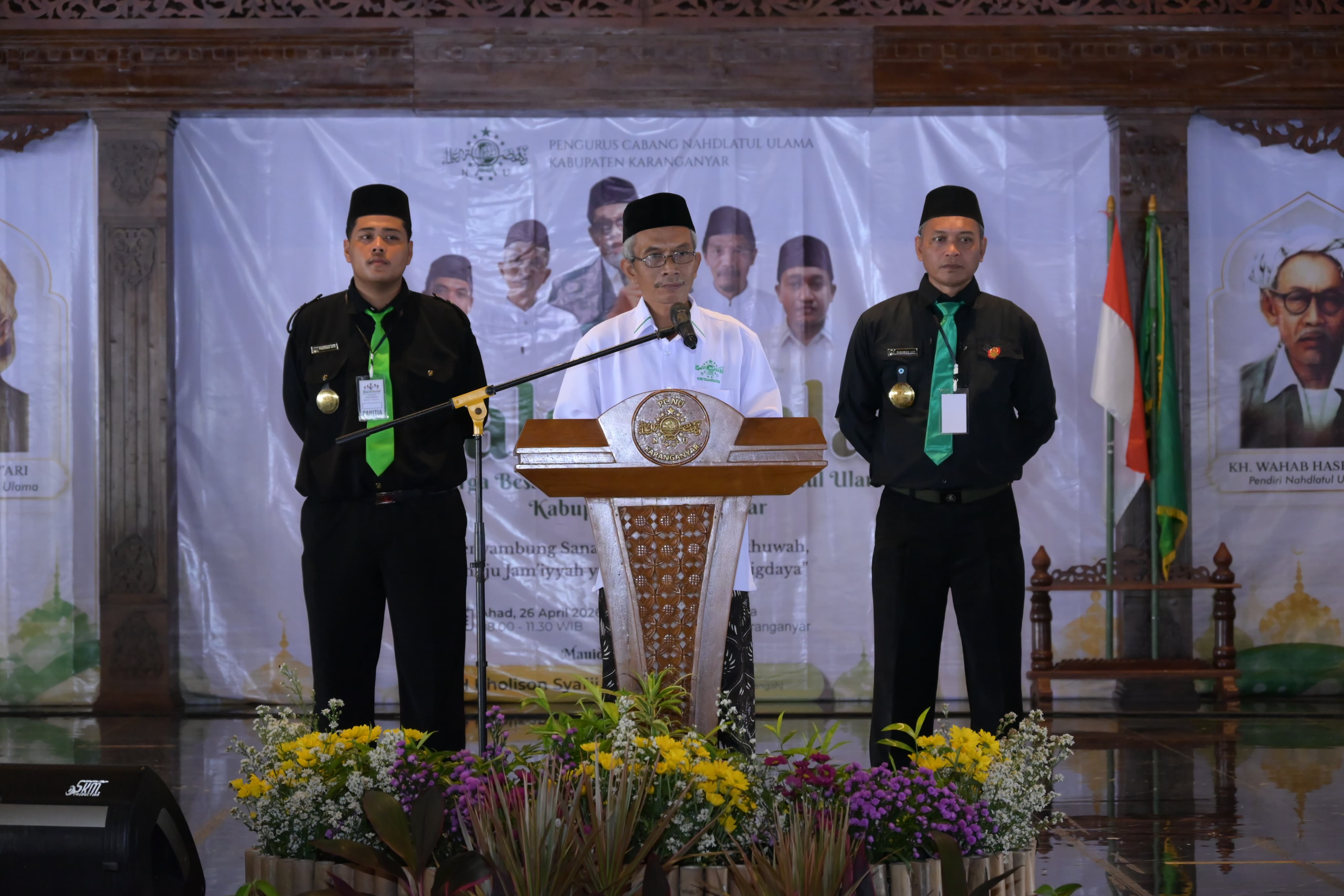 KH. Abdul Aziz mengingatkan bahwa berdirinya NU di Kabupaten Karanganyar tidak lepas dari peran para pendiri dan pendahulu yang telah berjuang.