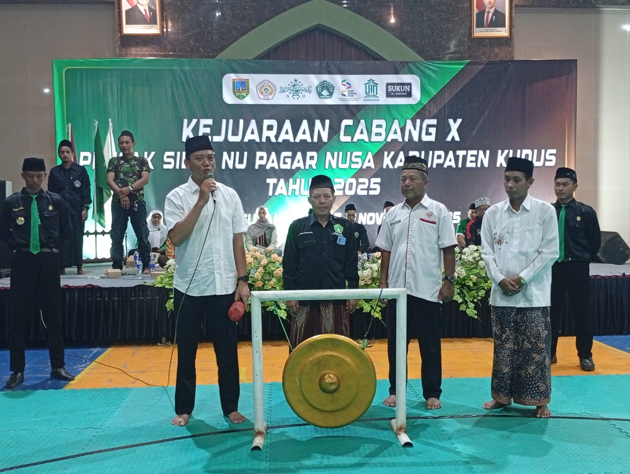 KUDUS,Suaranahdliyin.com – Kejuaran Cabang (Kejurcab) X Pencak Silat Nahdlatul Ulama (PSNU) Pagar Nisa Kudus secara resmi dibuka Kepala bagian Kesra Kudus Mintoro mewakili Bupati di Gedung Olah Raga (GOR) UIN Sunan Kudus, Jum’at malam (7/11/2025). Dengan demikian, 336 pesilat Pagar Nusa siap bertanding dalam Kejurcab yang berlangsung Sabtu hingga Ahad (9/11/2025).