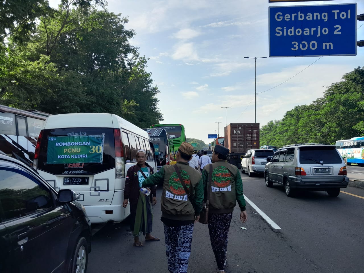 Semangat tinggi masyarakat NU terpaksa terhenti di jalan tol. Kemacetan panjang terjadi di pintu keluar jalan Raya Sidoarjo, sehingga banyak peserta yang memutuskan untuk berjalan kaki. Tak tanggung-tanggung, sekitar 3 kilometer harus ditempuh demi mencapai lokasi.