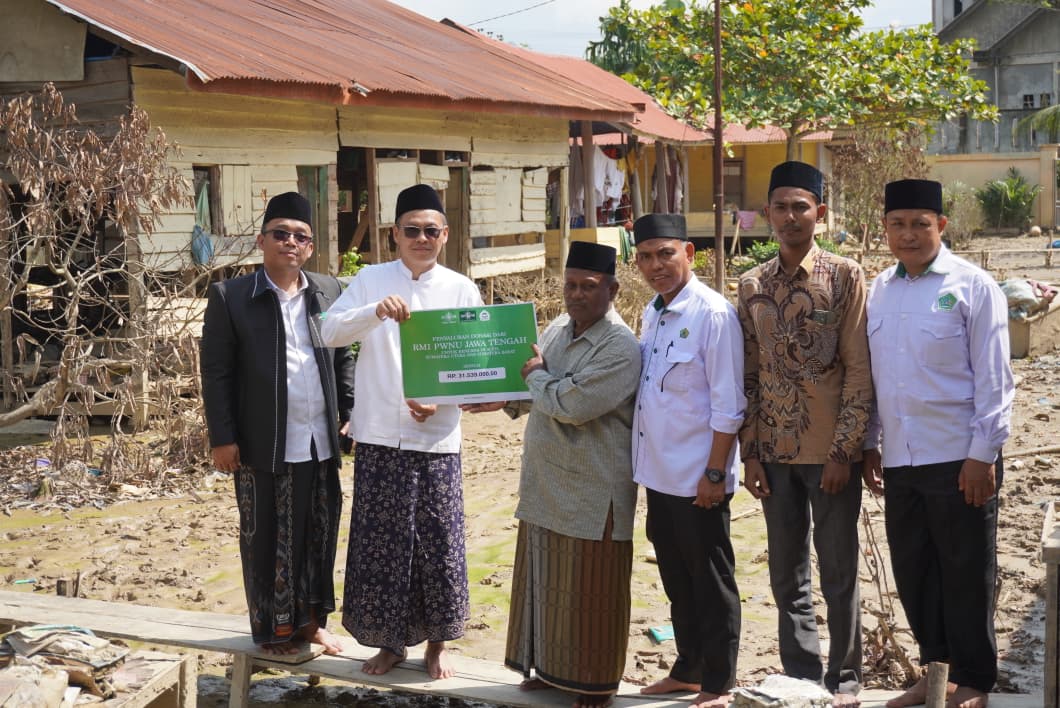 Ketua RMI PWNU Jateng KH. Ahmad Fadhlullah Turmudzi menyerahkan langsung dana hasil penggalangan donasi kemanusiaan itu diberikan kepada tiga pesantren di Aceh. Masing masing Dayah Budi Al-Mukhtari, Bireun, Dayah Baitul Huda, Aceh Utara dan Dayah Babussalam Al-Hanafiyah Aceh Utara.