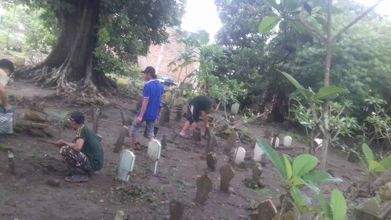 Bakti sosial dengan membersihkan tempat pemakaman umum (TPU) di kampung, ini sekaligus dalam rangka menyambut datangnya Ramadan, bulan suci umat Islam yang tak lama lagi ‘menyapa’.