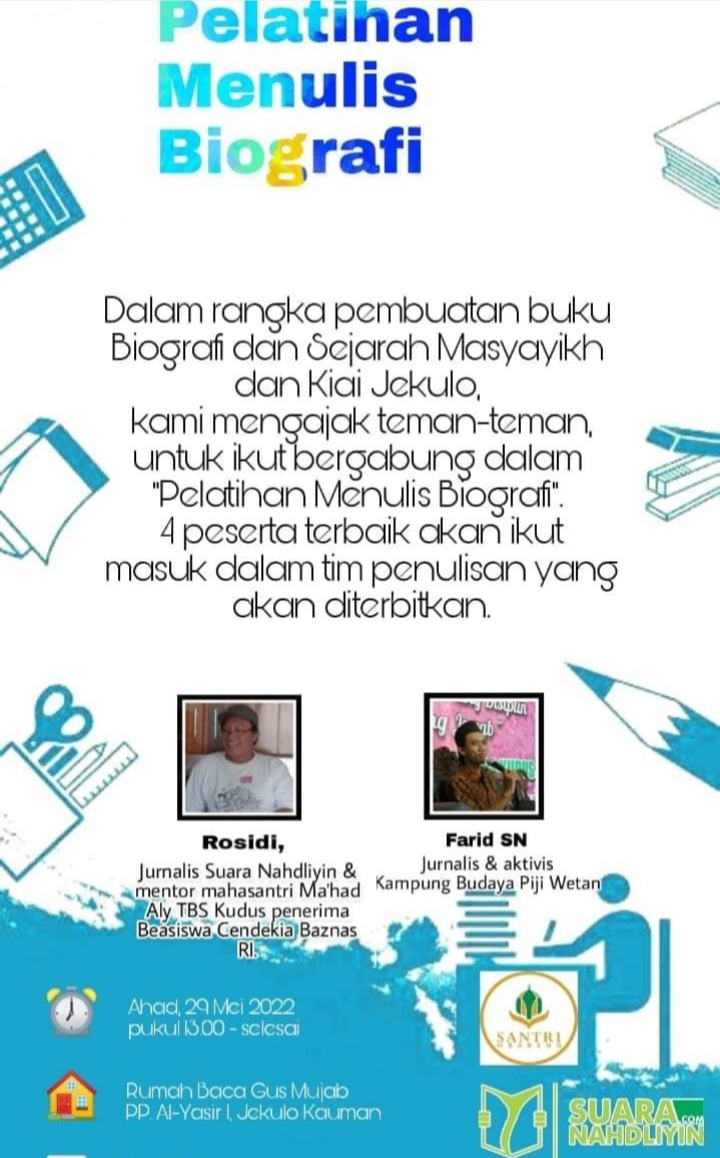 KUDUS, Suaranahdliyin.com – Belasan santri dan santriyah Mbareng dari berbagai Pondok Pesantren (Ponpes) yang ada di wilayah Jekulo Kauman, mengikuti diskusi penulisan biografi, Ahad (29/5/2022).