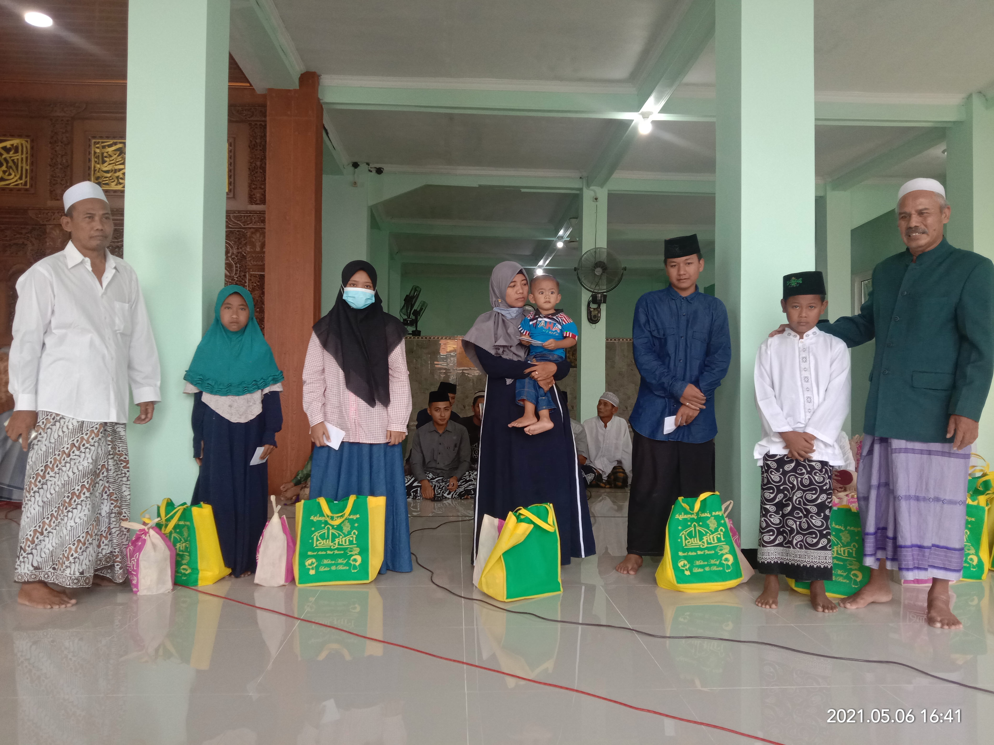 Santunan dilangsungkan di serambi masjid selepas Ashar. Nampak hadir pada kesempatan itu jajaran pengurus takmir dan tokoh masyarakat, khususnya dari RW IX di desa tersebut.