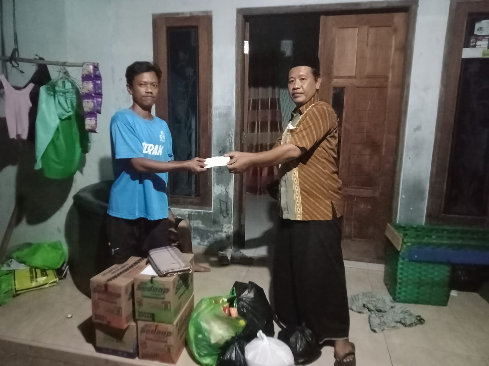 Disamping uang, Abdul Aziz merinci perolehan bantuan berupa barang sembako dan kebutuhan lainnya yang terkumpul. Yakni beras 400 kg, mie instan 150 karton, Gula pasir 78 kg, teh kopi, minyak goreng 41 lt, air mineral 22 dos, susu formula, roti , sabun, pasta gigi dan pakaian baru (gamis, sarung, celana).