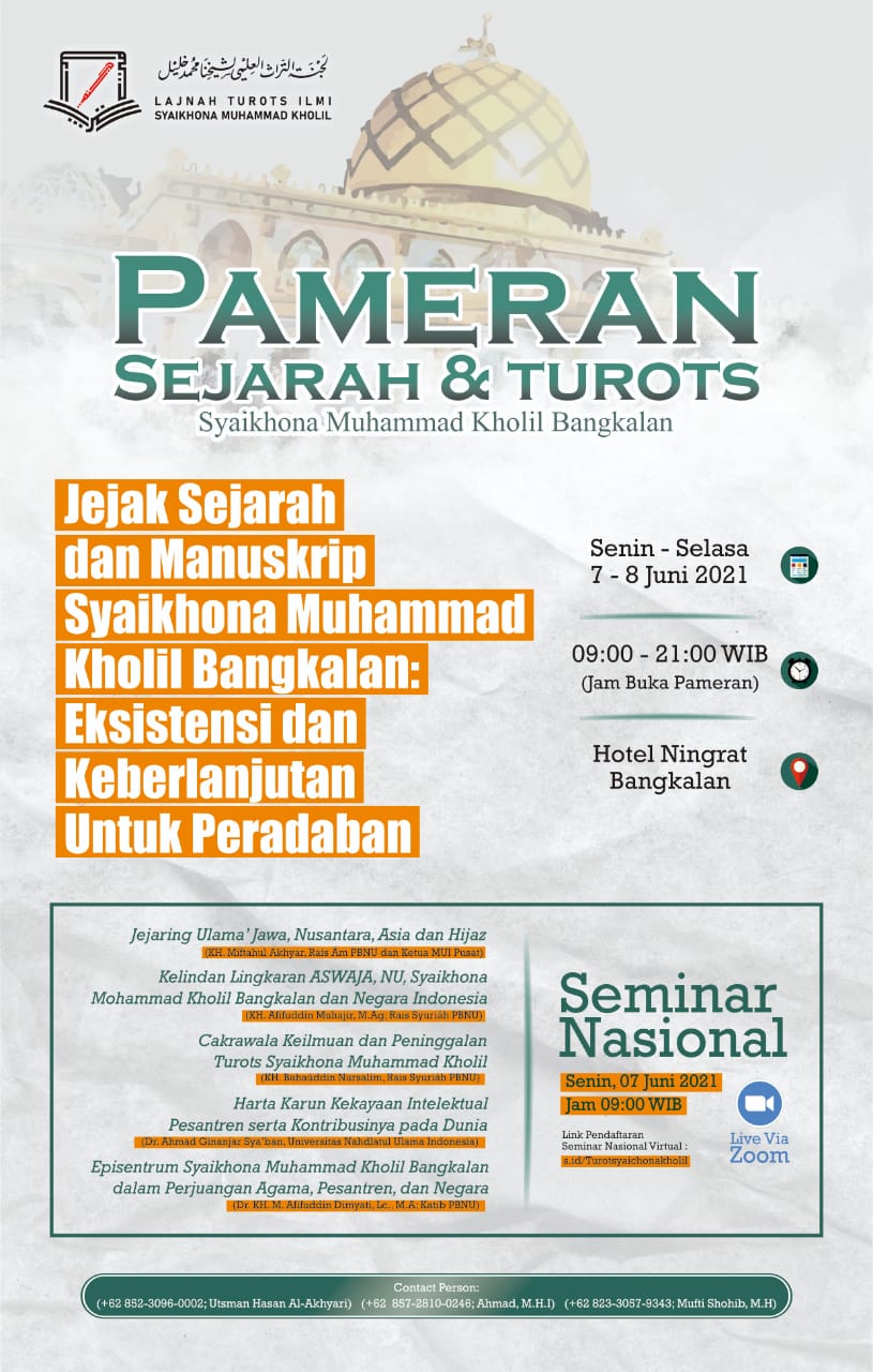 Pameran mengusung tema “Jejak Sejarah dan Manuskrip Syaikhona Muhammad Kholil Bangkalan: Eksistensi dan Keberlanjutan untuk Peradaban”, yang dibuka pukul 09.00 – 21.00 WIB.