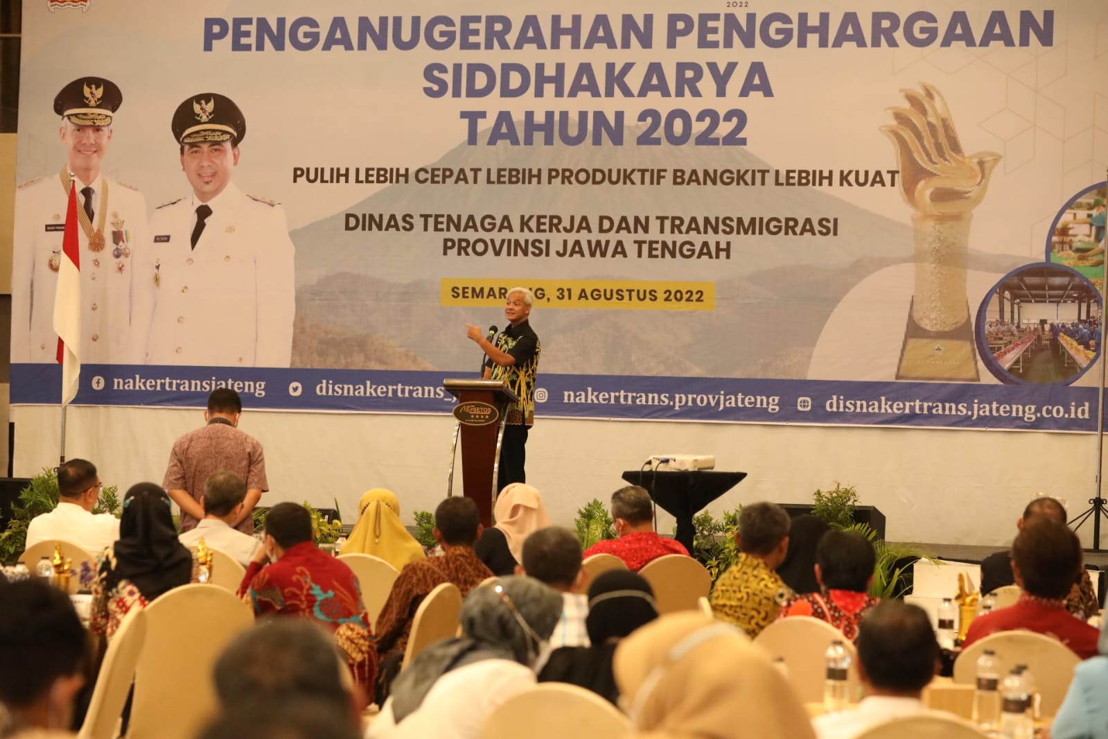 SEMARANG, Suaranahdliyin.com – Gubernur Jawa Tengah Ganjar Pranowo memberikan penghargaan Siddhakarya kepada sembilan perusahaan di Jawa Tengah. Penghargaan diberikan atas prestasi yang dicapai oleh perusahaan, dengan harapan menjadi inspirasi perusahaan kecil, menengah, dan besar lain untuk menghasilkan produk berkualitas.