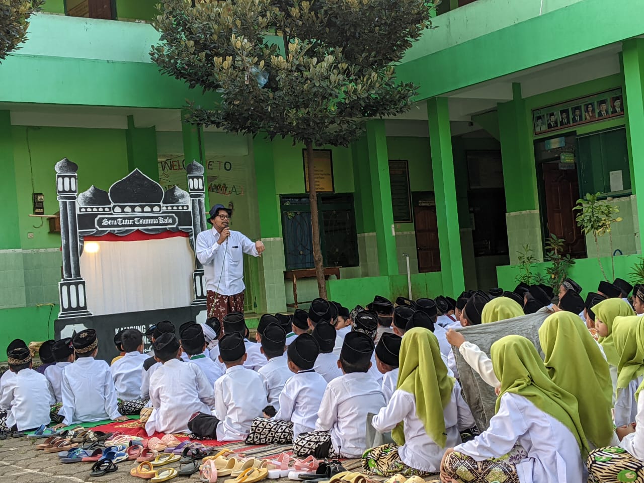 “Dalam cerita-cerita itu, kami selipkan shalawat yang mudah dikenal anak, misalnya ya lal waton atau sholawat lainnya,” ujarnya.