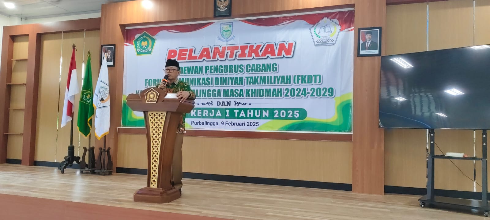 Ketua Umum Dewan Pengurus Pusat Forum Komunikasi Diniyah Takmiliyah,KH Lukman Hakim menyampaikan hal itu saat memberikan sambutan Pembukaan dan Pengarahan dalam rangka Pelantikan dan Rakercab 1 DPC FKDT Kab Purbalingga, pada hari Ahad (9/2/2025) di aula PLHUT Kemenag Kab Banjarnegara..