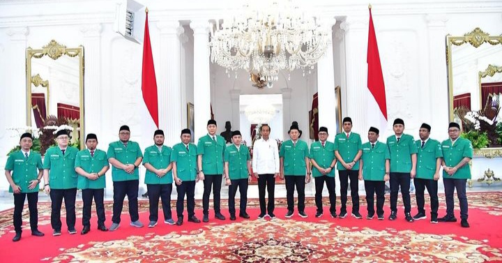 Rombongan PP GP Ansor yang dipimpin oleh ketua umum GP Ansor 2024 – 2029, Addin Jauharudin dan disambut langsung oleh Presiden RI Joko Widodo (Jokowi) di Istana Negara, Kamis (16/5/2024).
