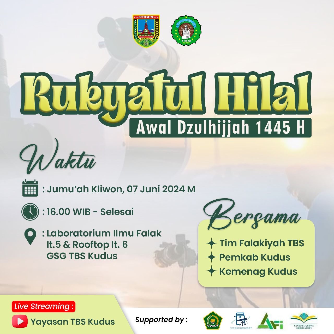 KUDUS, Suaranahdliyin.com – Bertempat Gedung Serba Guna (GSG) TBS Kudus pada Jumuah (7/6/2024) sore nanti, akan dilangsung rukyatul hilal awal Zulhijjah 1445 H/ 2024 M.