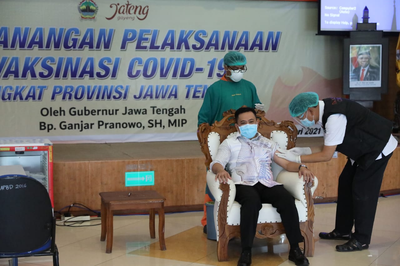 Penyanangan vaksinasi yang dipimpin Gubernur Jateng, Ganjar Pranowo, itu dihadiri Wakil Gubernur Jateng Taj Yasin, Kapolda Jateng Irjen Pol Ahmad Luthfi, Pangdam IV/Diponegoro Mayjen TNI Bakti Agus Fadjari, Ketua Majelis Ulama Indonesia (MUI) Jateng KH Ahmad Darodji, serta anggota Forum Komunikasi Daerah (Forkompimda) lain.