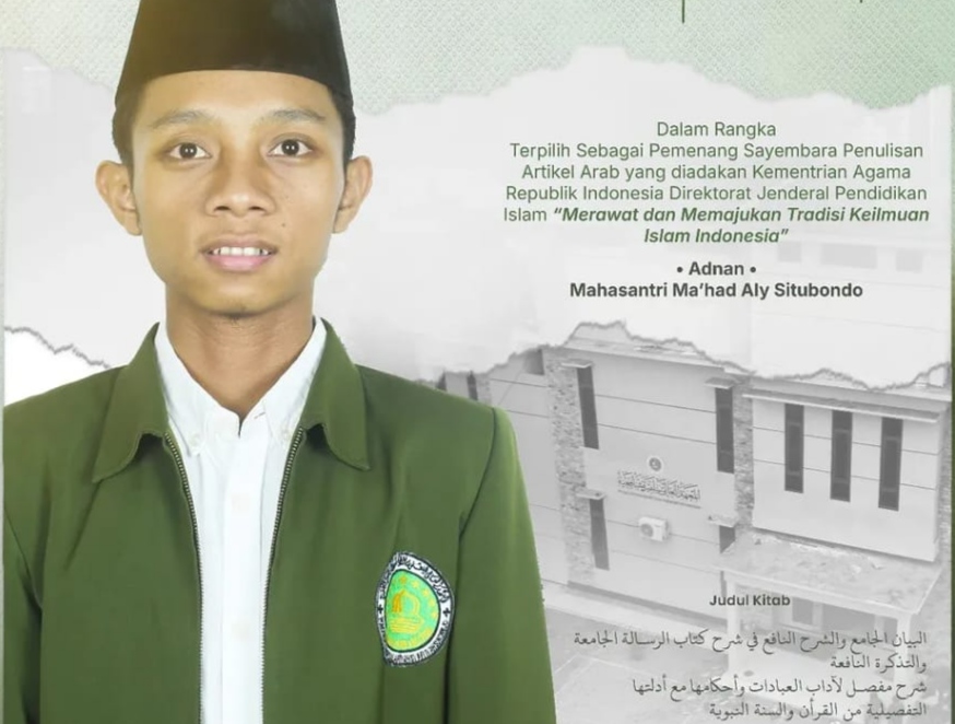 SITUBONDO,Suaranahdliyin.com – Mahasantri Ma’had Aly Situbondo, Adnan Jinawar Al-Yamani berhasil menjadi pemenang sayembara penulisan Jurnal Turasia yang diadakan Kementrian Agama Republik Indonesia Direktorat Pendidikan Diniyah dan Pondok Pesantren.,