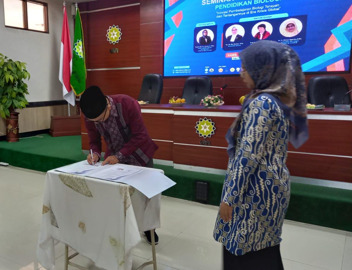 Kaprodi Pendidikan Biologi UIN Sunan Gunung Djati Bandung, Dr. Sumiyati, M.Si sangat mengapresiasi dan mendukung atas inisiasi penandatangan kerja sama yang sekaligus dilanjutkan dengan realisasinya yaitu kolaborasi penyelanggaraan Seminar Nasional Pendidikan Biologi Ke-4 dengan tema Inovasi Pembelajaran Biologi Terapan dan Tantangannya di Era Krisis Global.