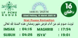 Jadwal Imsakiyah untuk Wilayah Kudus, 16 Ramadan 1446 H
