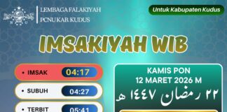Jadwal Imsakiyah untuk Wilayah Kudus, 22 Ramadan 1447 H