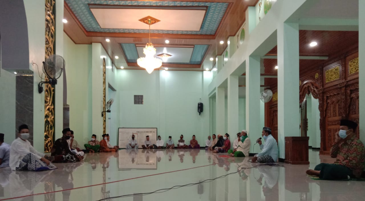 Tahlil dan doa bersama ini digelar di serambi Masjid Roudlatul Jannah, ini dalam rangka kirim doa untuk salah satu pengurus PRNU Desa Jepang, H Ahmad Syakuri, yang meninggal dunia pada Kamis (20/5/2021).