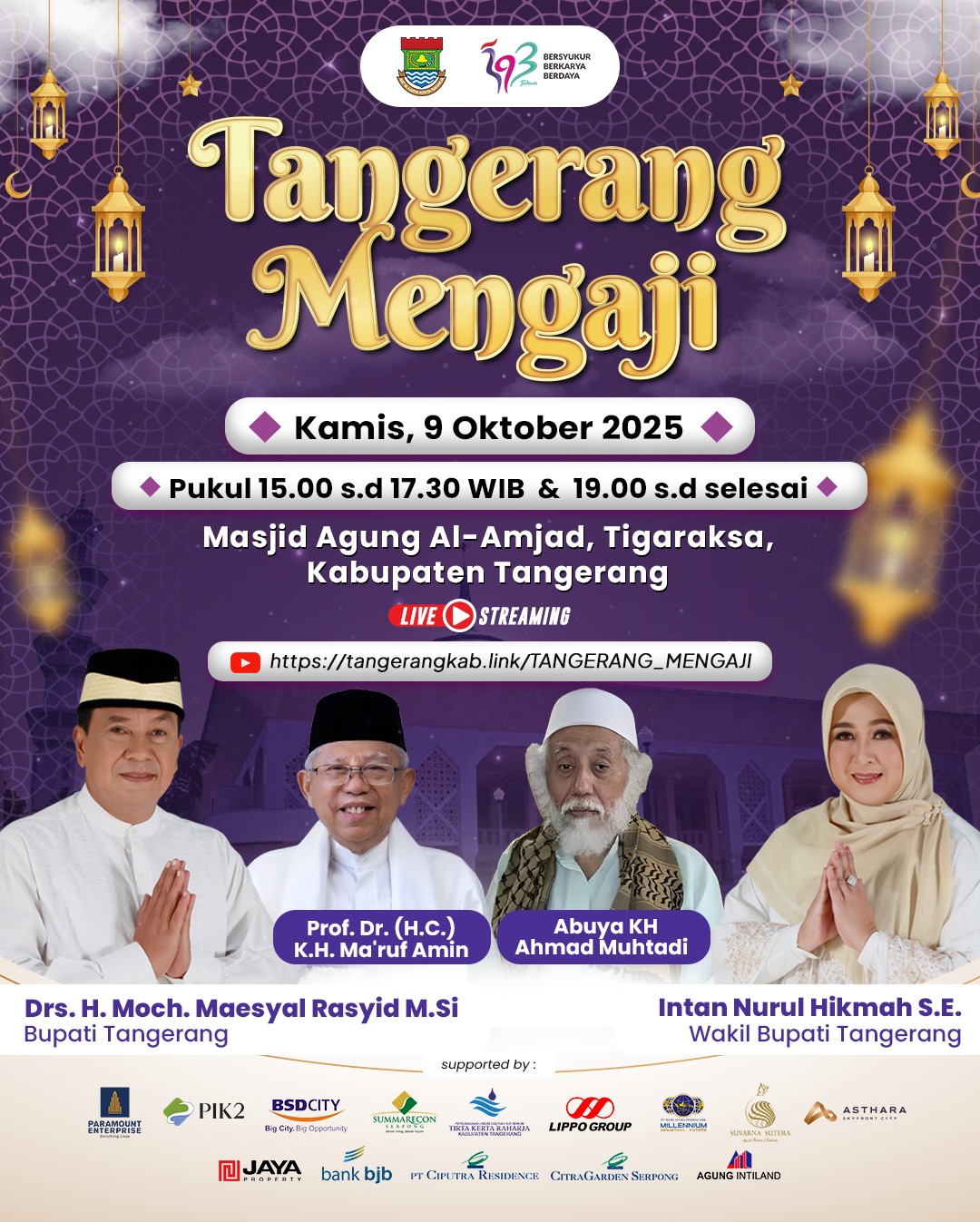KABUPATEN TANGERANG, Suaranahdliyin.com – Bertempat di Masjid Agung Al-Majad, Tigaraksa, Kabupaten Tangerang akan dilangsungkan “Tangerang Mengaji” pada Kamis (9/10/2025) besok.