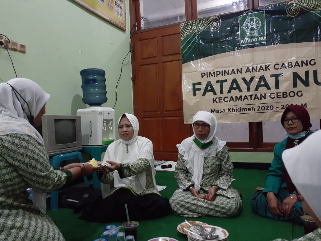 Tasyakuran yang dihadiri Pembina, kader dan pengurus Fatayat itu, mereka membaca al-Qur’an dan dilanjutkan memotong tumpeng harlah bersamaan waktunya buka puasa. Pada kesempatan itu, mereka juga meluncurkan brand usaha Fatayat NU Gebog bertajuk“Lumbung FG”.