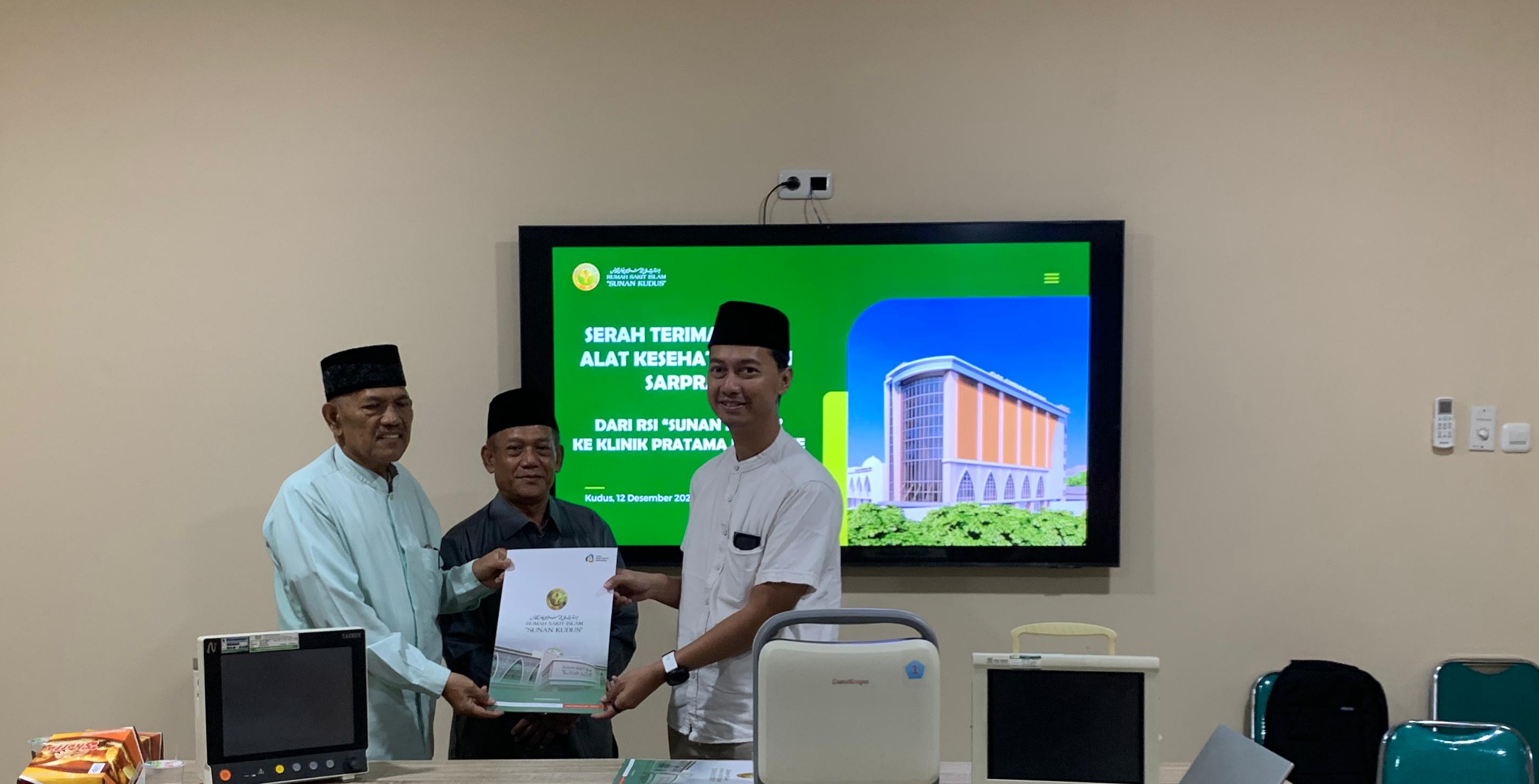 KUDUS,Suaranahadliyin.com – Klinik Pratama NU Medika Dawe menerima bantuan alat kesehatan (alkes) dan sarana prasarana lainnya dari Rumah Sakit Islam Sunan Kudus, Jum’at (12/12/2025) pagi tadi. Serah terima alkes berlangsung di Ruang Rapat Muria 4, Gedung Khulafaur Rasyidin RSI Sunan Kudus.