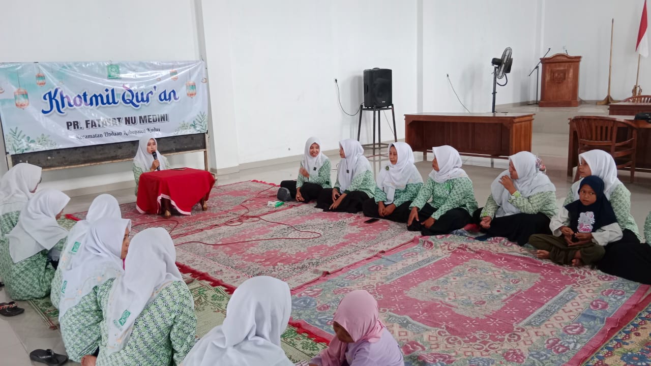 KUDUS, Suaranahdliyin.com – Dalam upaya ikut mencari berkah Ramadan, Pimpinan Ranting (PR) Fatayat NU Medini kecamatan Undaan Kudus mengadakab Khataman Al-Qur’an secara muqoddaman di Gedung Balai Desa setempat, Selasa sore, (25/32025). Usai khataman, mereka membagikan takjil buka puasa kepada pengguna jalan di bahu jalan raya depan gedung balai desa.