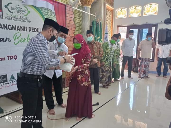 Ketua UPZIS NU Care – LazisNU desa Gondangmanis Suhartono menjelaskan Ramadan berbagi merupakan bentuk pelayanan NU kepada masyarakat guna menyemarakkan Ramadhan 1442 H. Tujuannya, membantu meringankan kehidupan serta memberikan semangat dan motivasi yatama, dhuafa, muallaf, guru mengaji, bilal, dan Penggali Kubur.