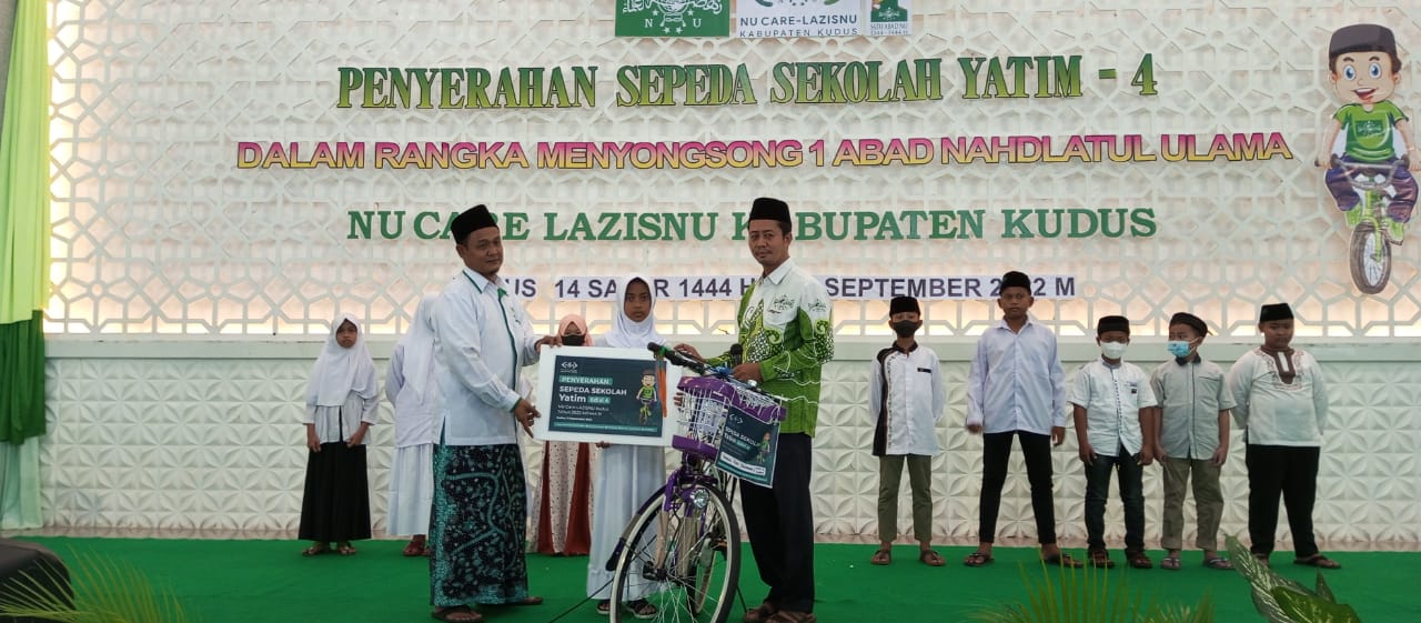 Dalam kegiatan tersebut , NU Care-LAZISNU Kudus menyerahkan 300 sepeda sekolah kepada anak yatim se-Kudus. (Umi/adb)