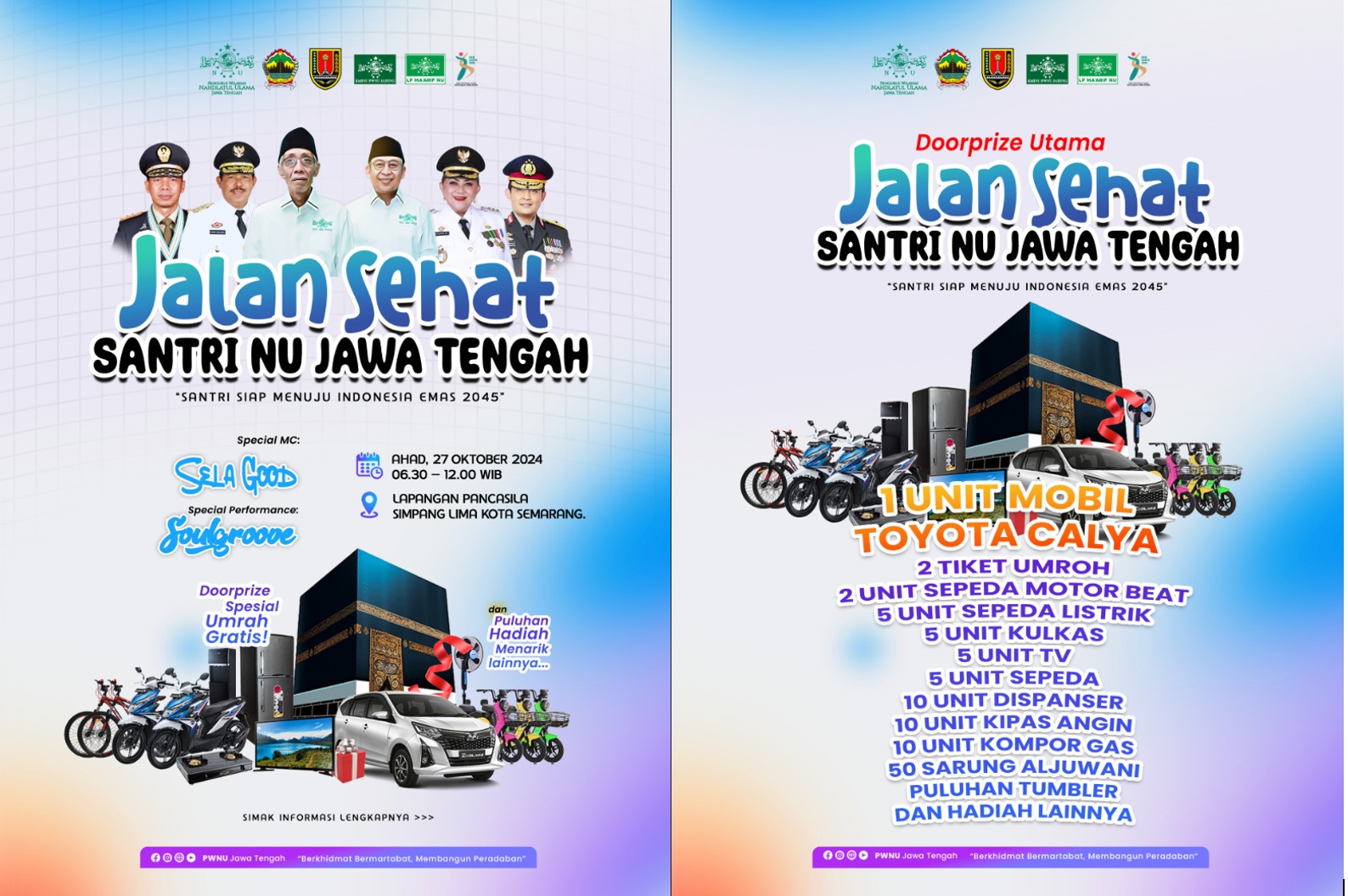 Ketua Panitia Jalan Sehat PWNU Jawa Tengah Ahmad Zaki Fuad menyampaikan bahwa dalam kegiatan itu akan diramaikan Sela Good, dan Soul Groove Band.